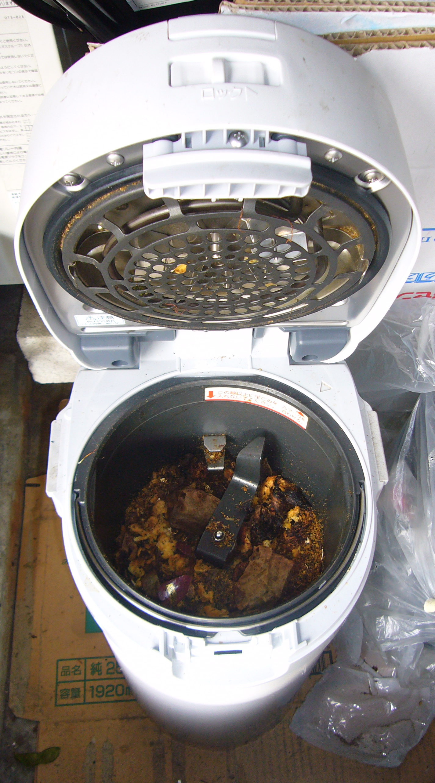 In a country where there are no in-sink garbage disposals, no yards where you can keep a heap of compost fermenting, and you have to keep all your trash in your apartment until it’s time to put it out for collection, the Garbage Dehydrator is a key appliance. You really only have to run it once or twice a week if you’re careful about not making a lot more food than you eat – I wait until it’s pretty full before turning it on.