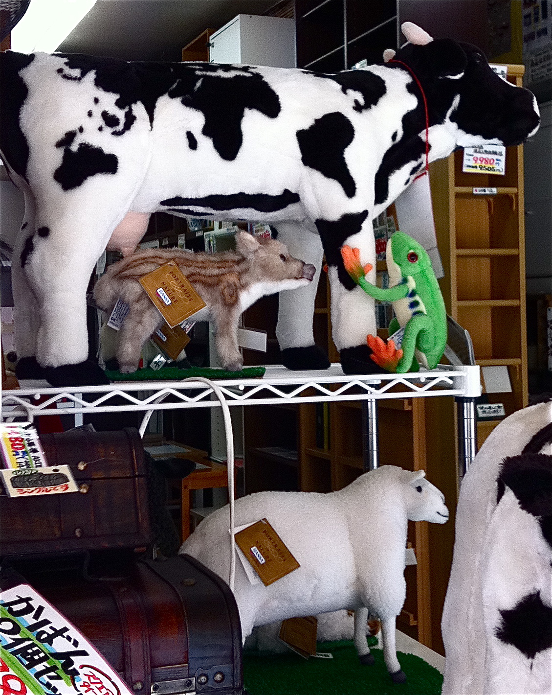 Japanese toy makers can usually rise to the challenge of making a cute stuffed animal out of even the most unappealing lifeforms – witness Capybara-san, a surprisingly popular character even though World’s Biggest Rodent is not exactly anybody’s idea of a heartwarming claim to fame. So whose idea was it to produce the anatomically correct cow and the baby…uh, tapir?