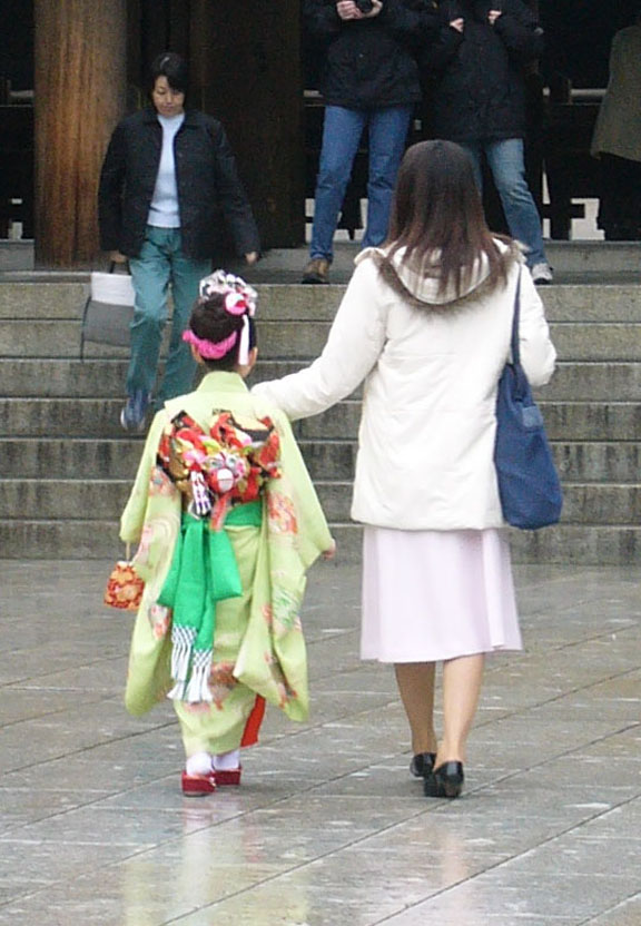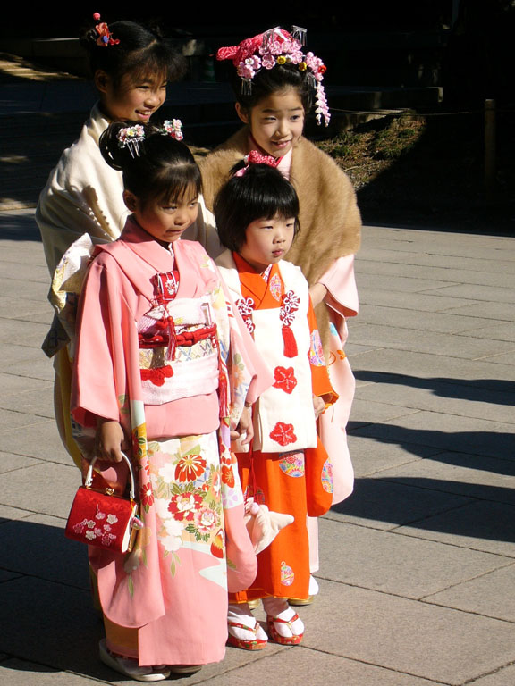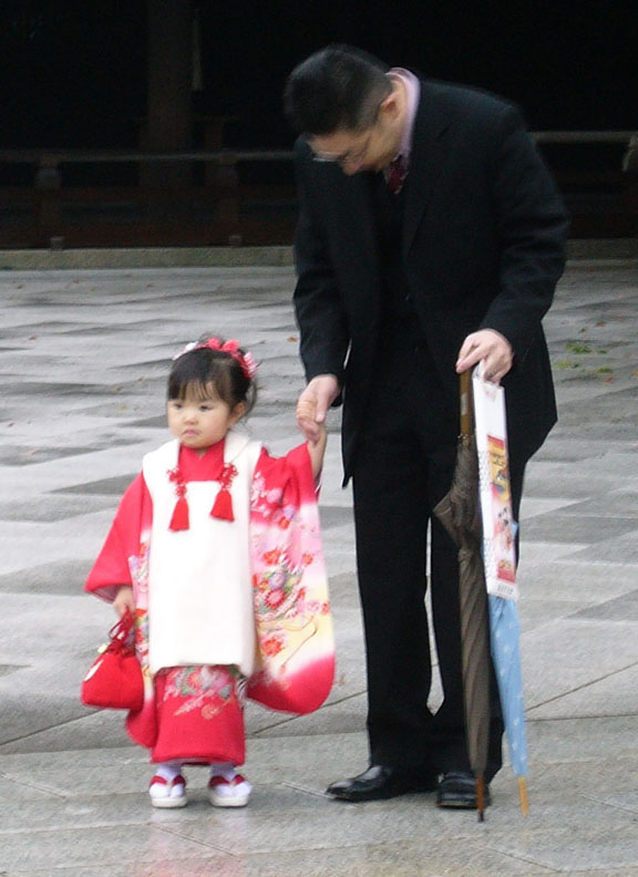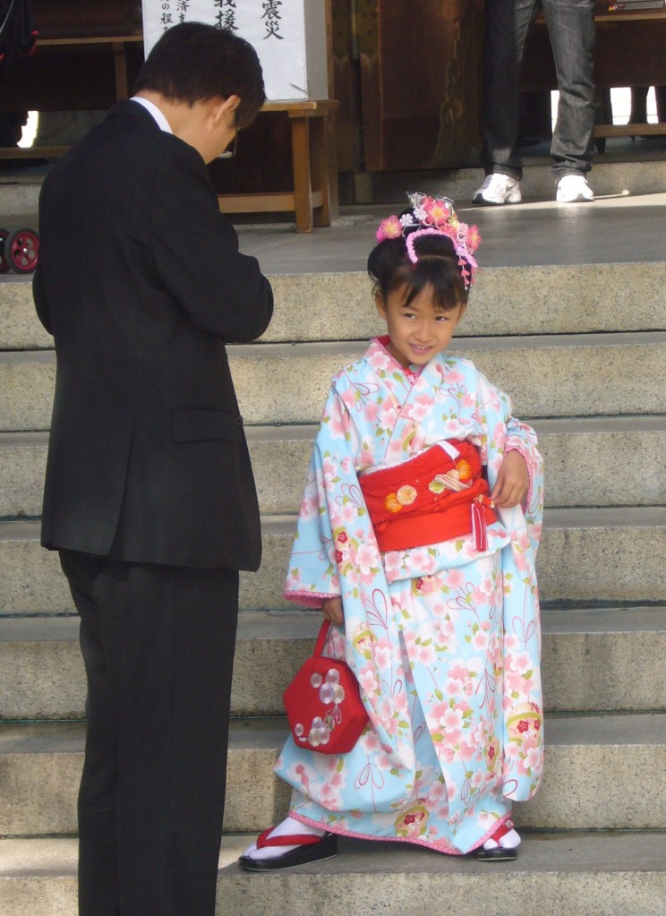 Today was the official day of Shichi-Go-San, but for weeks families have been dressing their 7-year-old girls, 5-year-old boys, and 3-year-old girls in traditional finery and taking them to shrines to wish for long life and good health.