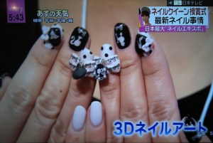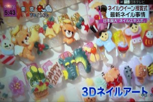 I love Japanese TV. Sandwiched between a news story about protesters being pepper sprayed by police in a dangerous foreign country (America) and a piece on noodles topped with grilled intestines (horumon udon) was a story on the 2011 Tokyo Nail Expo’s Nail Queen.