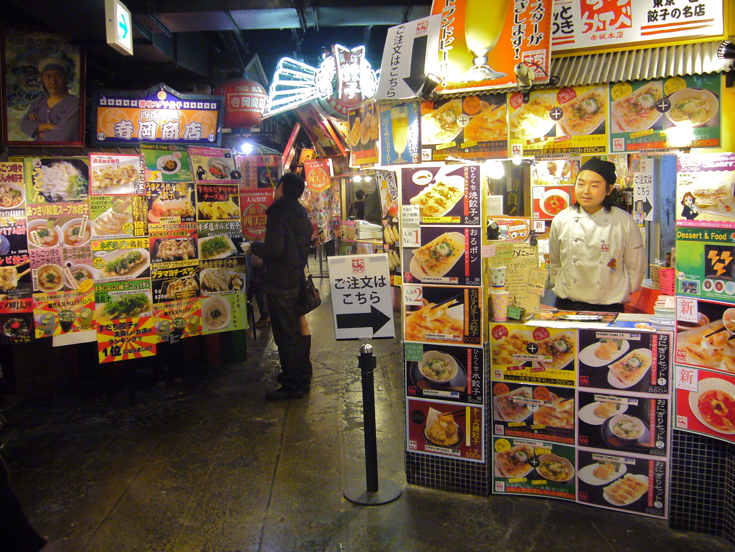 Inside Namco Namja Town in Ikebukuro is a crooked little street lined with stands featuring the best potsticker dumplings from all over Japan. It looks like an old shitamachi lane, and the choices are dizzying. Regional specialties served with a squeeze of sudachi lime or mixed with shiso leaves are joined by more, hmm, experimental fillings like cheese, kim chee, and squid. My friend Shiho and I tried a shrimp and mayo variety with a side of smashed avocado to dip them in, but the ones we really liked had traditional pork filling and looked like little piggies:
