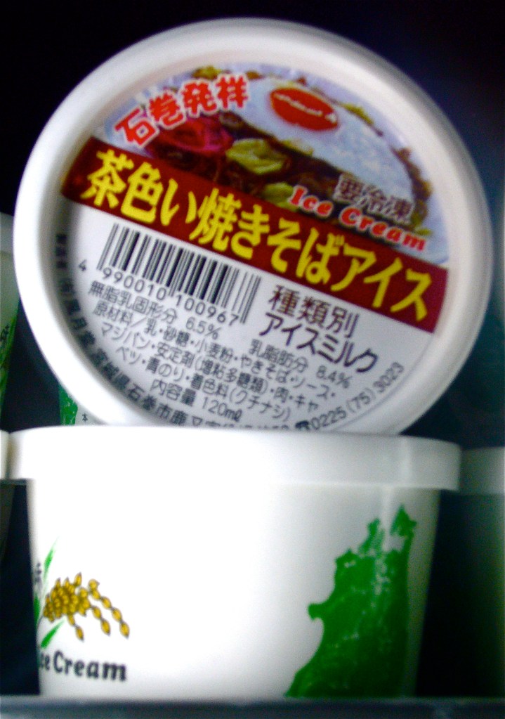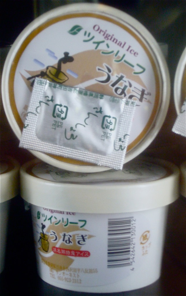 Yep, it’s actually eel-flavored ice cream. With a handy packet of sanshō pepper on top for your take-out dining pleasure! At the Cup Ice Store you can buy individual servings of this and many other flavors that at best might be described as…interesting.