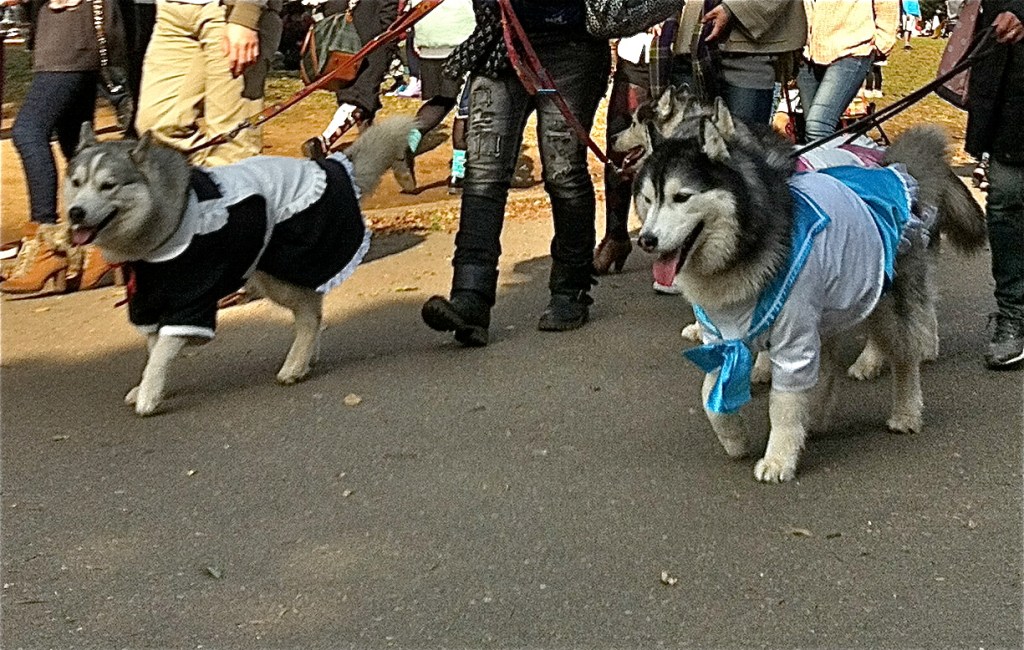 I didn’t think the Husky Club could outdo last month’s Husky kimono parade, but yesterday in honor of Japanese graduation season, they all turned up at the park dressed as manga versions of schoolgirls!