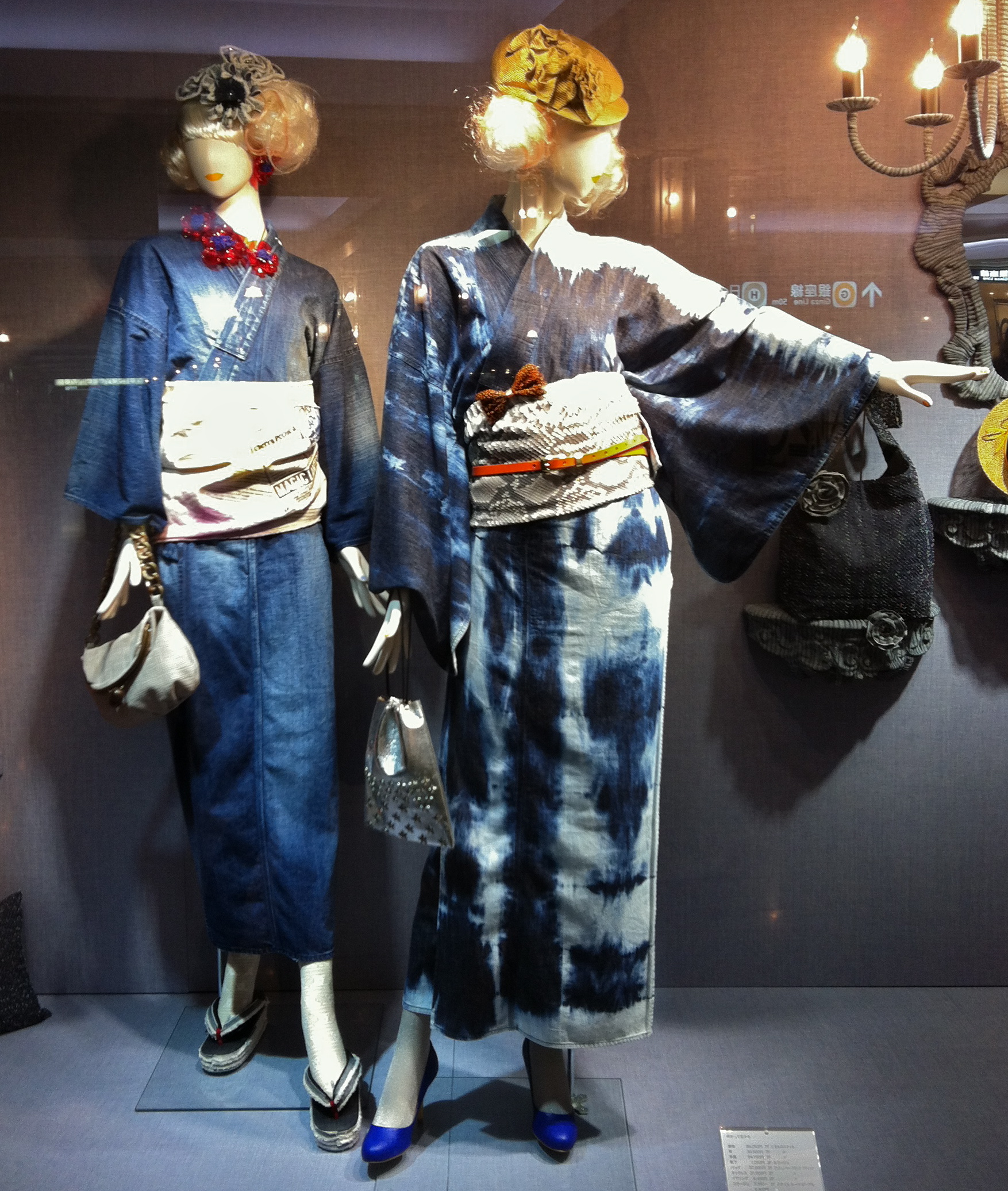 I saw this display at Matsuya Ginza and found myself wondering just what sort of occasion calls for the kimono equivalent of faded True Religions? Ultimate frisbee with the empress? Kabuki live at the Budokan? Haiku slam?