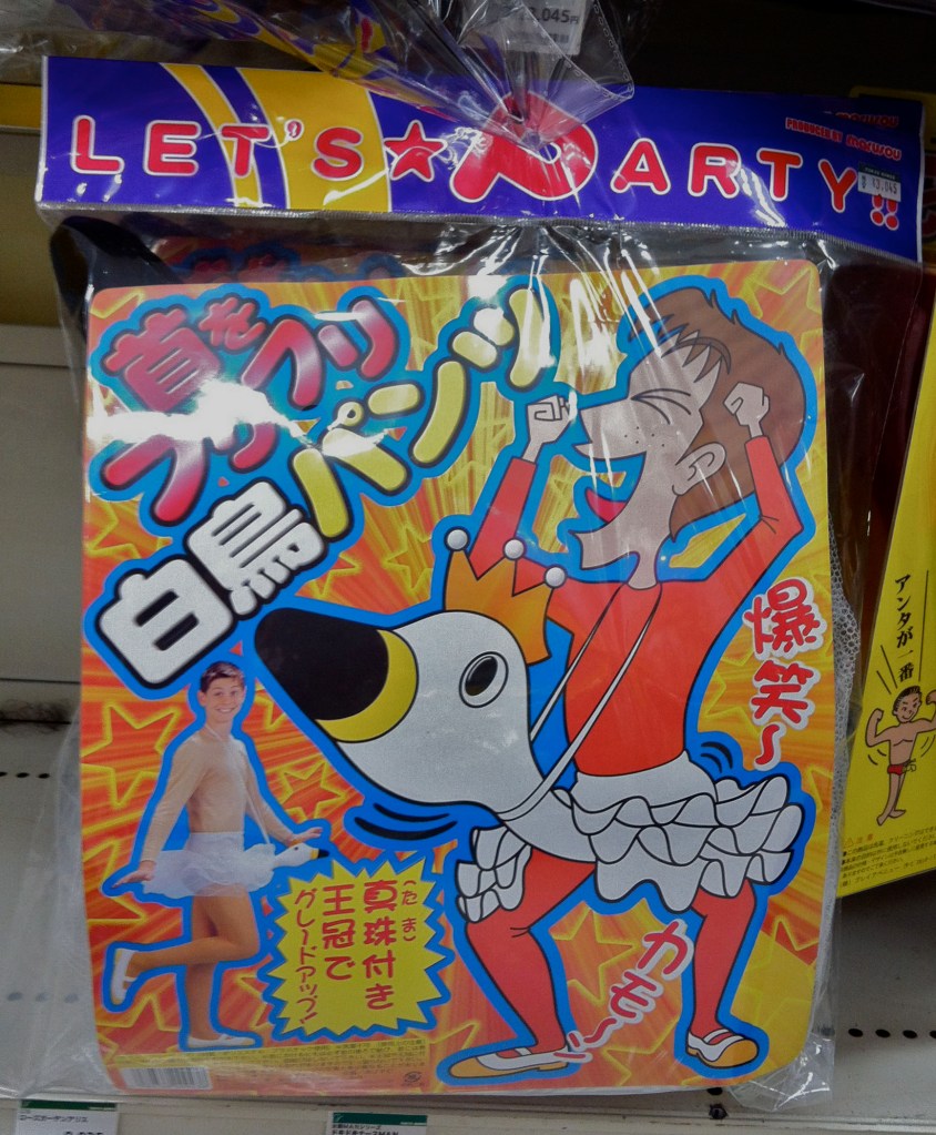 I must be doing something right, since I don’t have any Japanese friends who throw parties attended by anyone wearing THIS. Although not quite as permanent as a tattoo, pictures of oneself wearing this attractive item would certainly circulate endlessly on the interwebs, thwarting one’s job advancement for millennia to come.