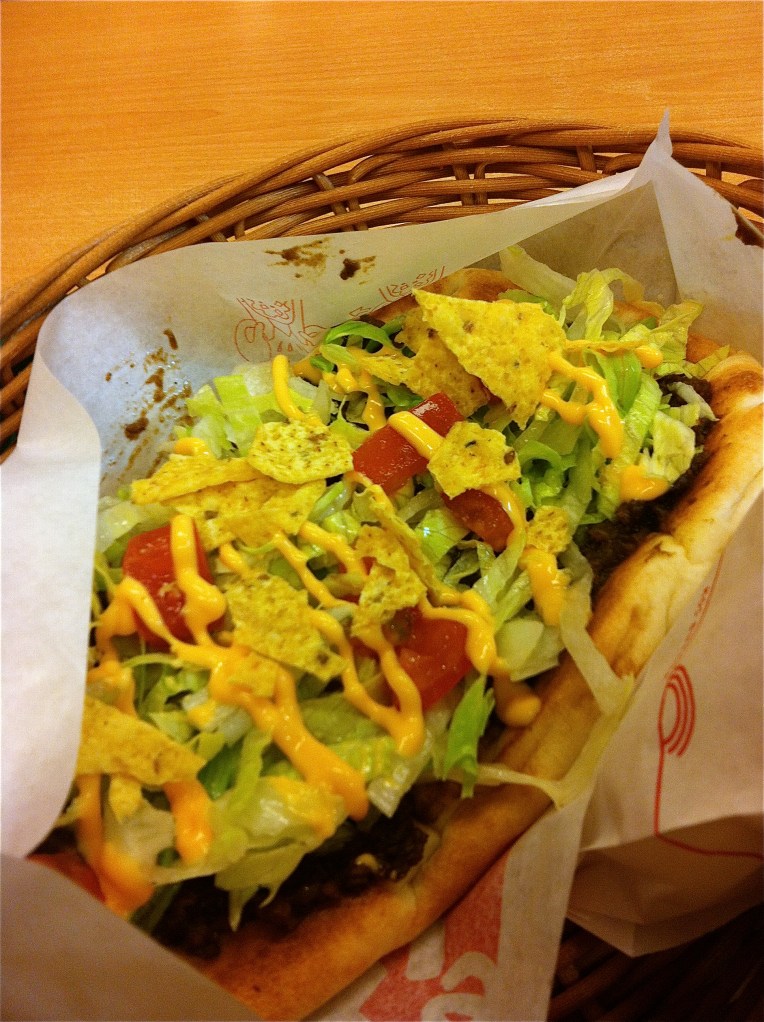 The taco enthusiast within me is appalled and intrigued by this odd cultural mismatch. I think I’ll just stick with the regular taco, though…
