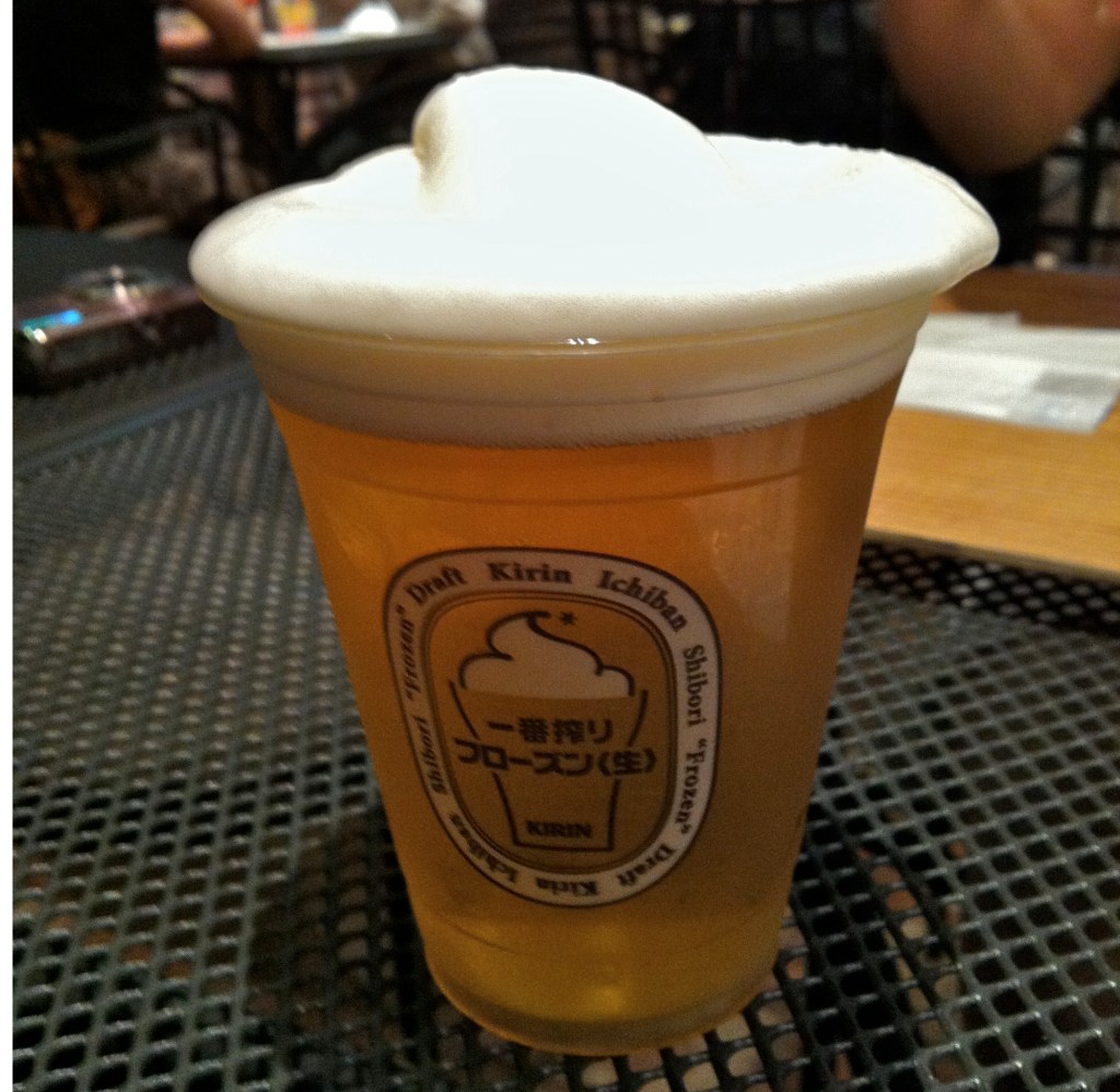 This summer in Tokyo the trending drink of choice is Frozen Draft Beer! The beer itself is chilled extra cold, then a head of beer slush is swirled on top from a repurposed Icee machine. On a steamy summer night, I have to admit, this fad did not disappoint!