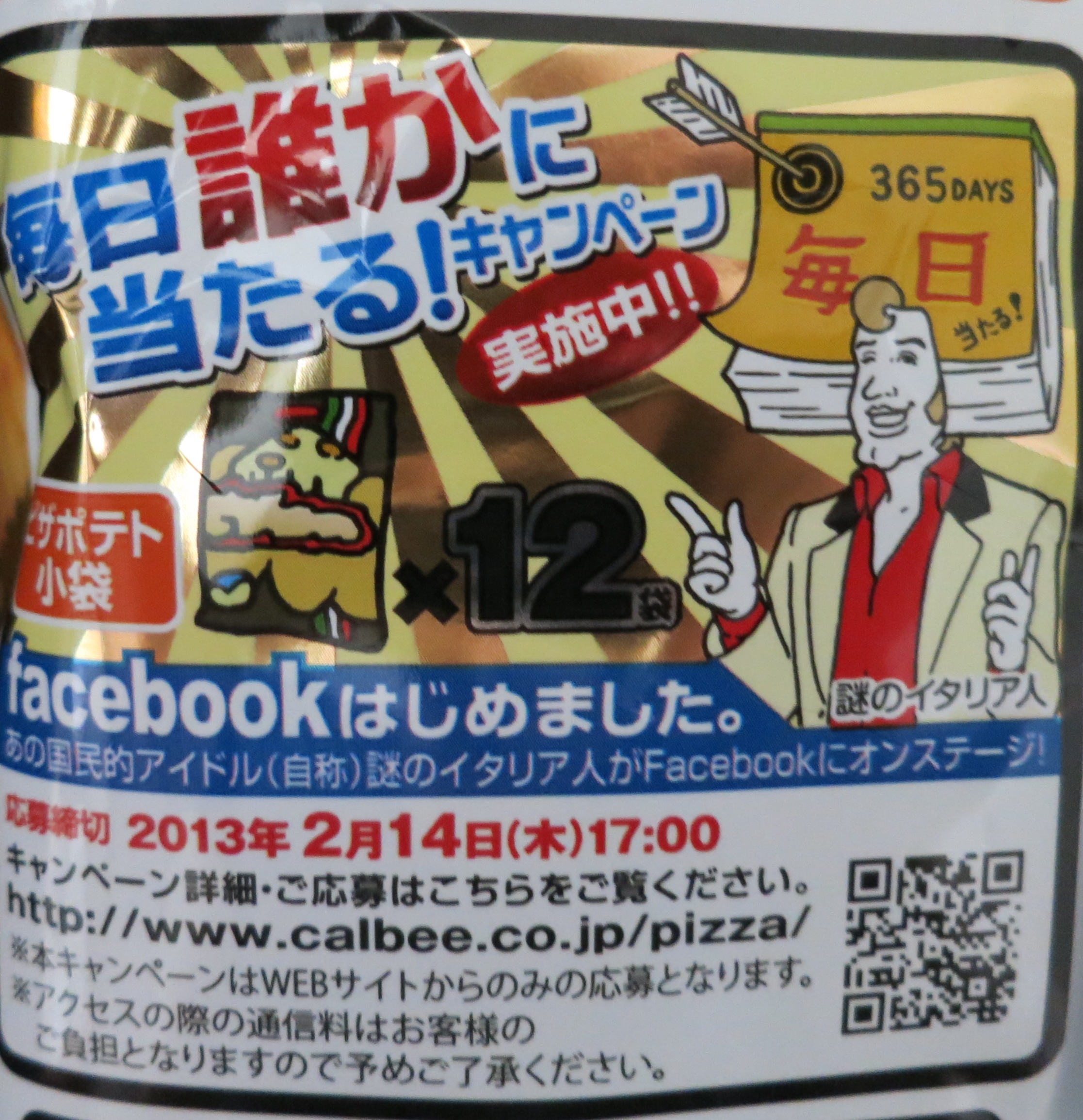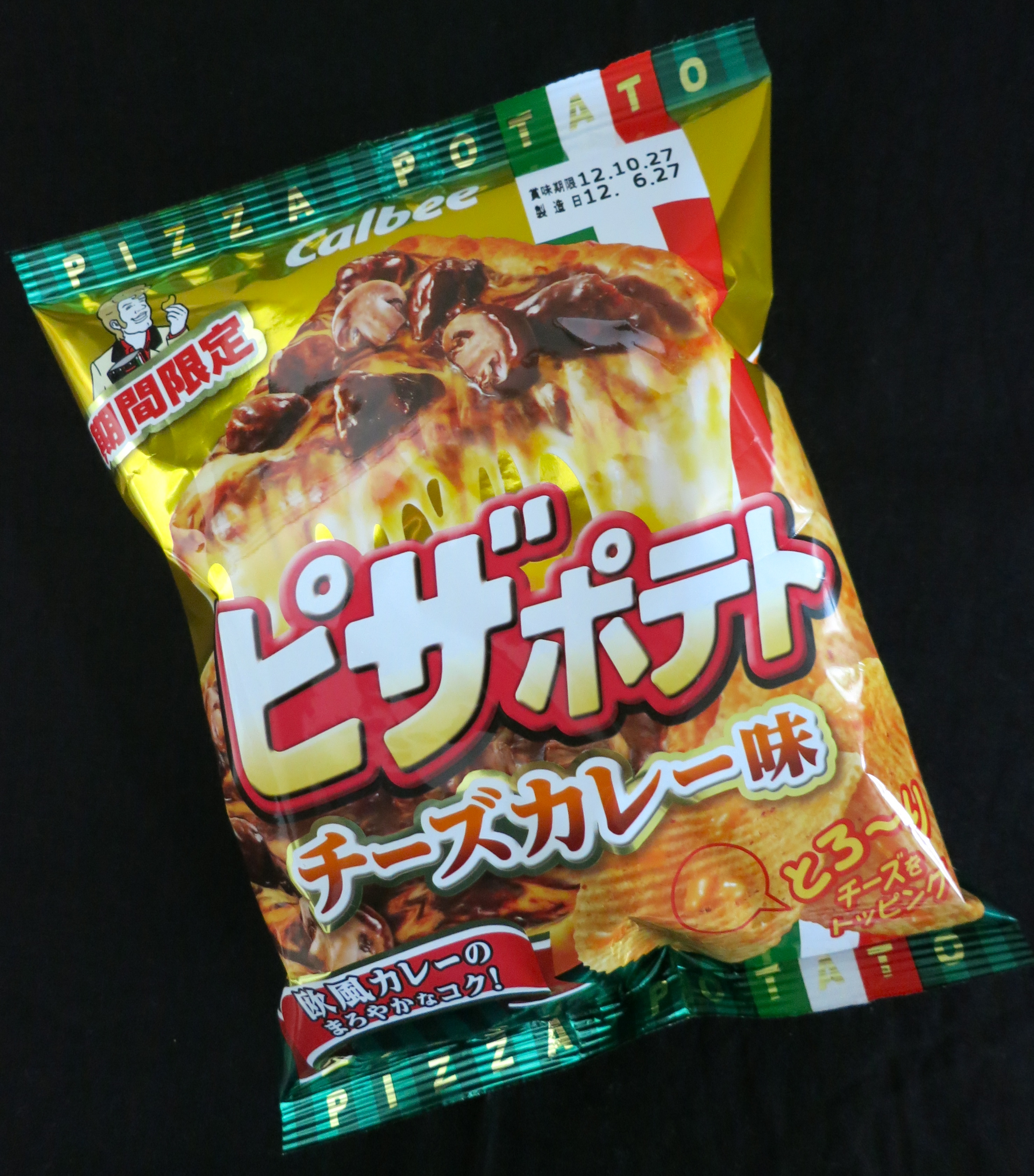 Nevermind that putting cheese on top of Japanese curry sounds about as appealing as stirring a spoonful of peanut butter into my coffee, the idea of serving that flavor mashup on a pizza-flavored potato chip has me running for my stash of purloined air discomfort bags. And in case I want to make this a regular event with friends, I’m reminded on the back that 365 days a year, I could command the Pizza Chip Typical Italian Guy to arrive on my doorstep with a 12-pack of these things, wearing a phone book on his head.