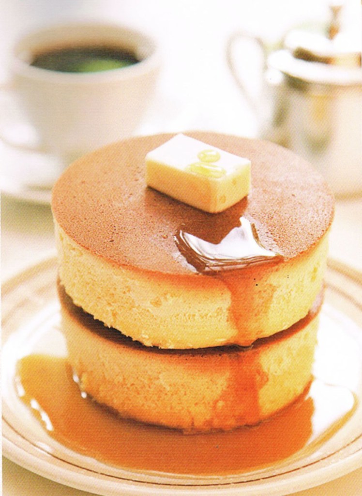 1. Sadly, this is from one of the many Japanese magazines that tell where to find certain foods, not how to make them, arg. >_<. I suspect, however, seasoned consumer of Japanese how-to advice that I am, the recipe involves special equipment (dedicated pancake rings, greased a certain way), The Hard Way Of Doing Things (i.e. whipped egg whites instead of dumping in a spoonful of baking powder) and meticulous instructions ("beat for 237 seconds with a 500 rpm electric whisk"). Like that. If I run across a recipe, I will certainly post it!