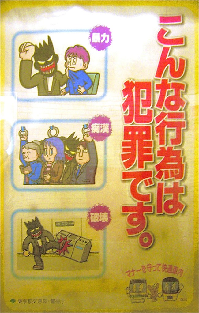 The Spitfire demon’s evil twin has donned a suit and volunteered to show commuters what not to do on Japanese trains.