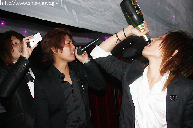 Laser lights and/or music starts up as they assemble from all corners of the club. Then, while a waiter prepares a tray of empty champagne glasses for a toast, the club leader takes the mike and leads a call-and-answer drinking song that all the hosts sing to the lucky lady. After her primary entertainer pops the cork, a toast is drunk by all the hosts, then the bottle is handed over to the customer to finish.