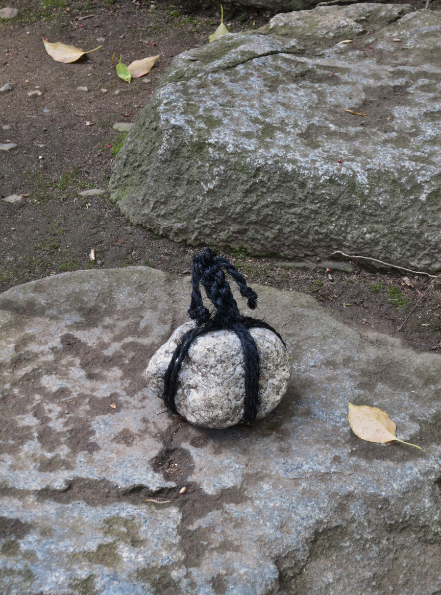 Wandering around the Denpo-in garden the other day, I spied this rock. Why did it have twine tied around it like that?