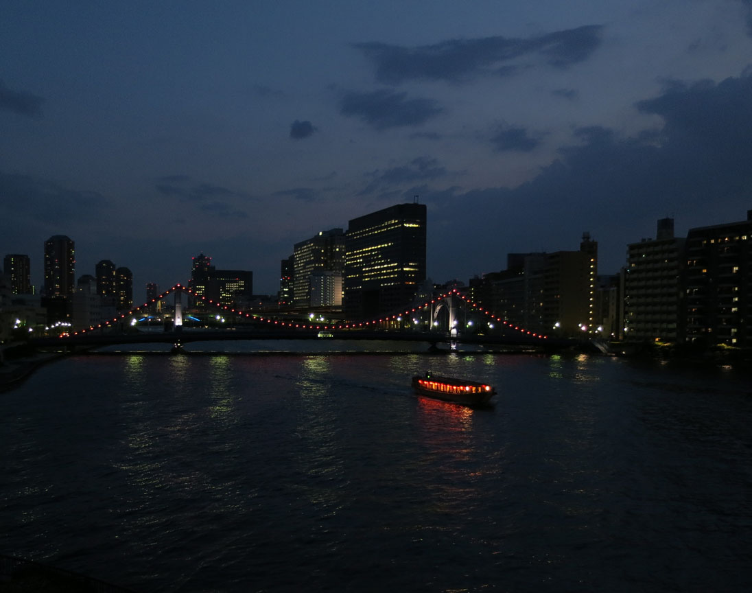By day, the Sumida River is a busy thoroughfare of boats and ferries, but at night it turns into a magical sea of sparkles.