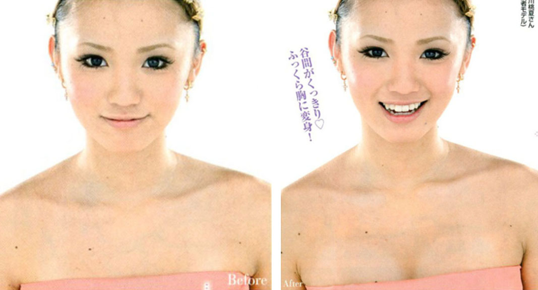 No matter how unlucky you were when they were handing out the bodacious ta-tas, in less than five minutes – without any miracle creams, thighmasters-for-the-boobs, or push-up bras – you too can sport some righteous cleavage! All you need is the handy makeup instructions in Gal Mori magazine and a few carefully chosen shades of face powder from the drugstore…
