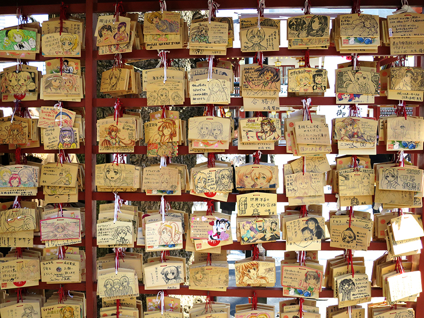 If you live, breathe, and want to work in anime, the Kanda Myōjin shrine is the place to pray that your dreams come true. But you’d better bring your markers and all your drawing chops, because competition for the gods’ attention is fierce. At most shrines, prayers are just scribbled on the backs of wooden ema with bleed-y black markers, but at Kanda Myōjin, the ones left by favor-seekers are real works of art.