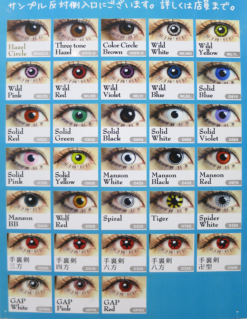 If you don’t think it’s quite out there enough to have eyes that make you look like a living doll, say hello to this line of definitely unnatural contacts! How about a nice alien look, with Solid White? Or perhaps a touch of psychopath, with Spiral or Manson Red?