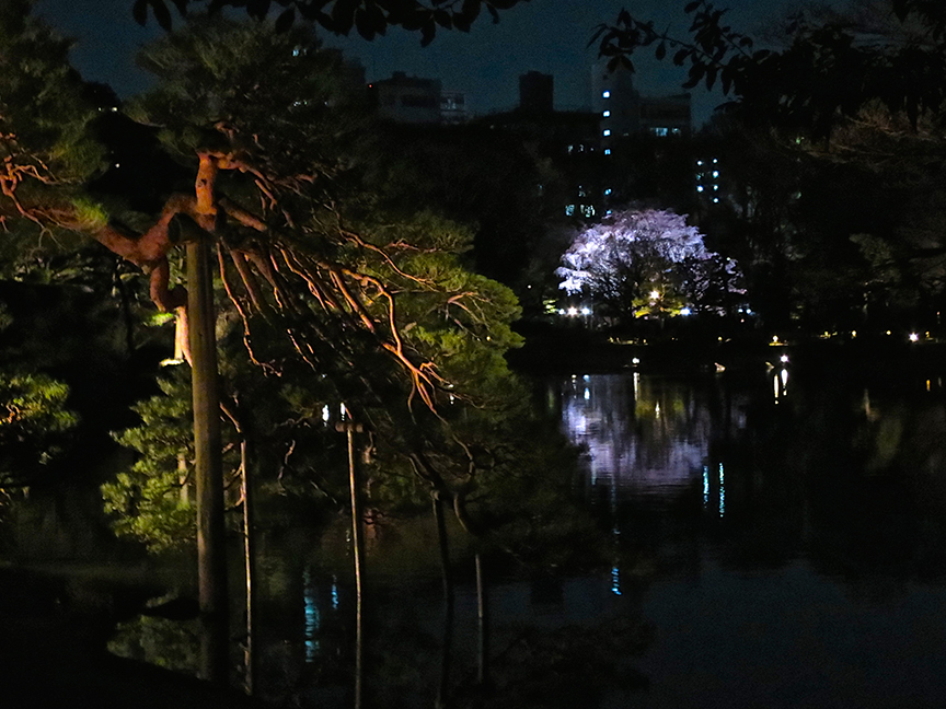 Rikugi-en Garden stays open until 9:00 p.m. for a week during cherry blossom season, so people can get their Famous Cherry Tree fix for the year. There aren’t a ton of cherry trees at this garden, but the the ones they have are pretty choice. They light up the rest of the garden too, so you can stroll around and enjoy the shapely pines and Japanese maples. Oh, and lest I forget: even if you hate cherry trees, come for the miso dango.
