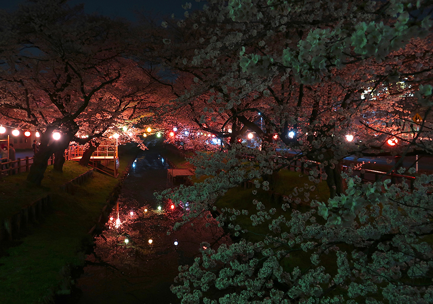 Oh no, don’t think you can put your feet up and flip some channels after the sun goes down during cherry blossom season – thanks to the current craze for “illuminations,” the ogling opportunities will seriously cut into your TV time.