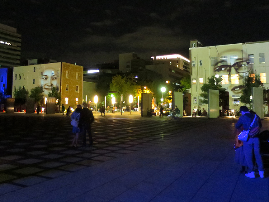 You know you’re in the right place when you chance across a plaza lit up in ever-changing colors.