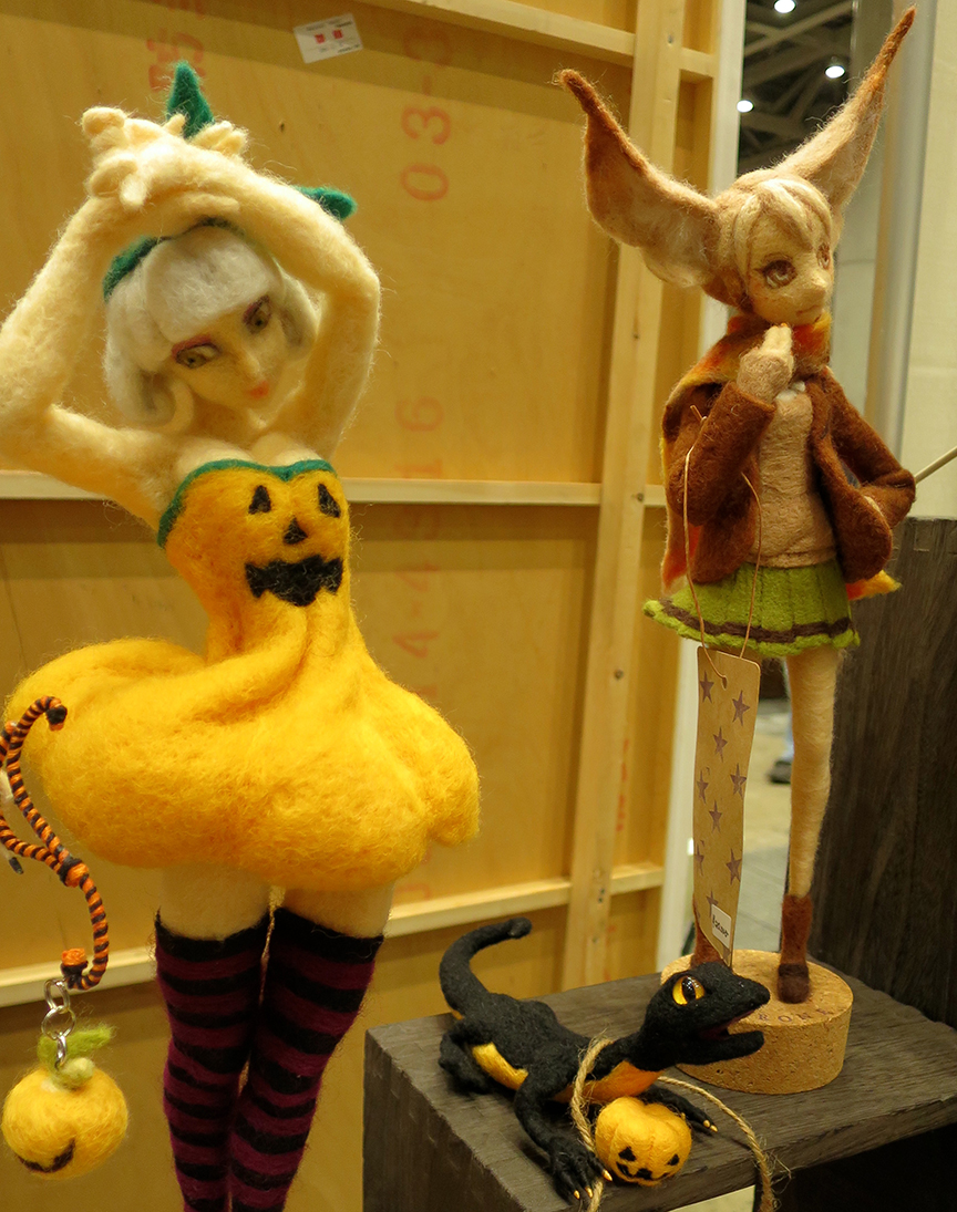 Elfin anime-style figures, mind-bogglingly crafted from felt.