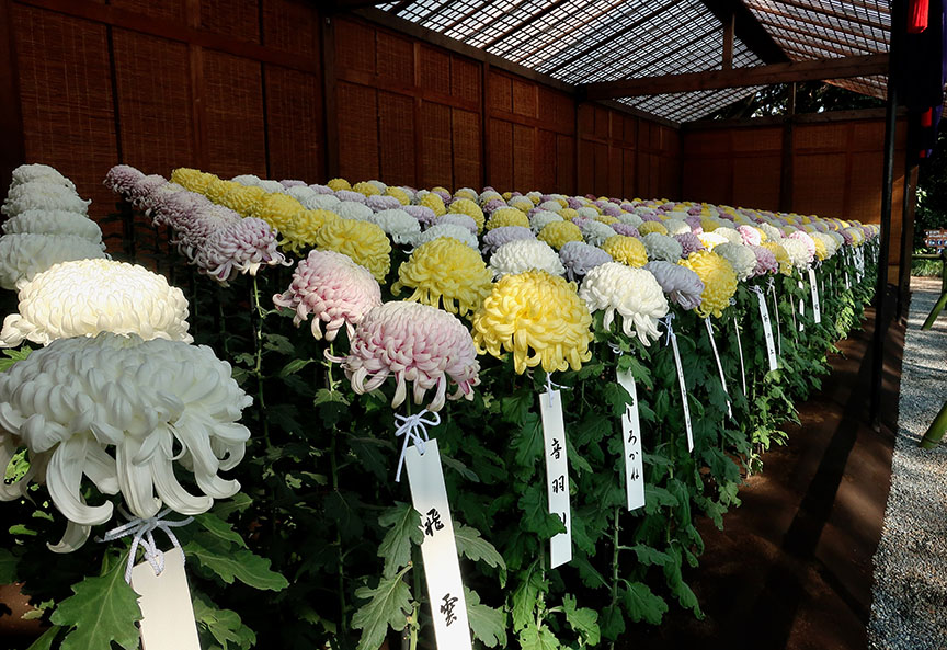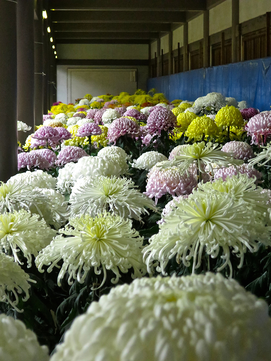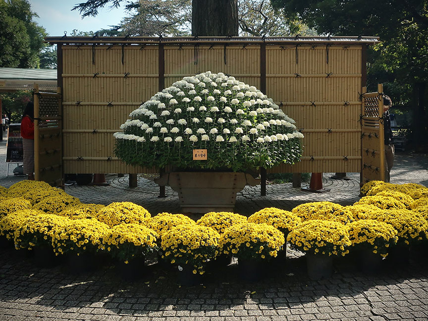 What the Meiji Shrine chrysanthemums lack in artistic innovation, they make up in perfection. I dare the gods to find any flaw at all in those white ones.