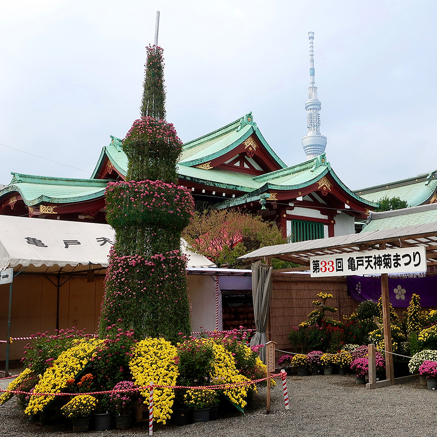 In addition to the bouffants, balls and prize specimens, the Kameido Shrine features this model of Skytree, with the real thing helpfully standing around for comparison in the background
