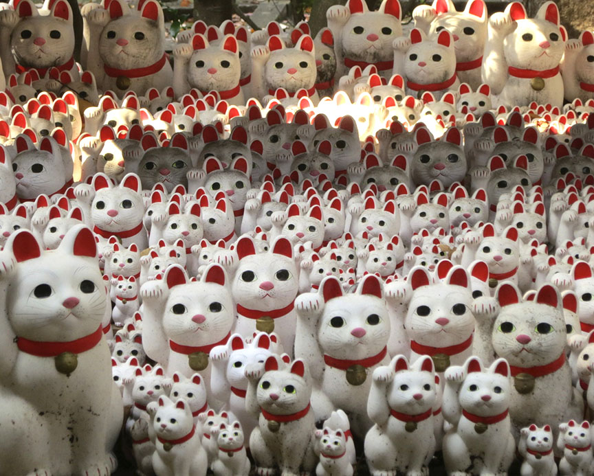 Added bonus: There is a shrine on the temple grounds where thousands of “good luck” maneki neko cat figures have been offered to ensure success in business.