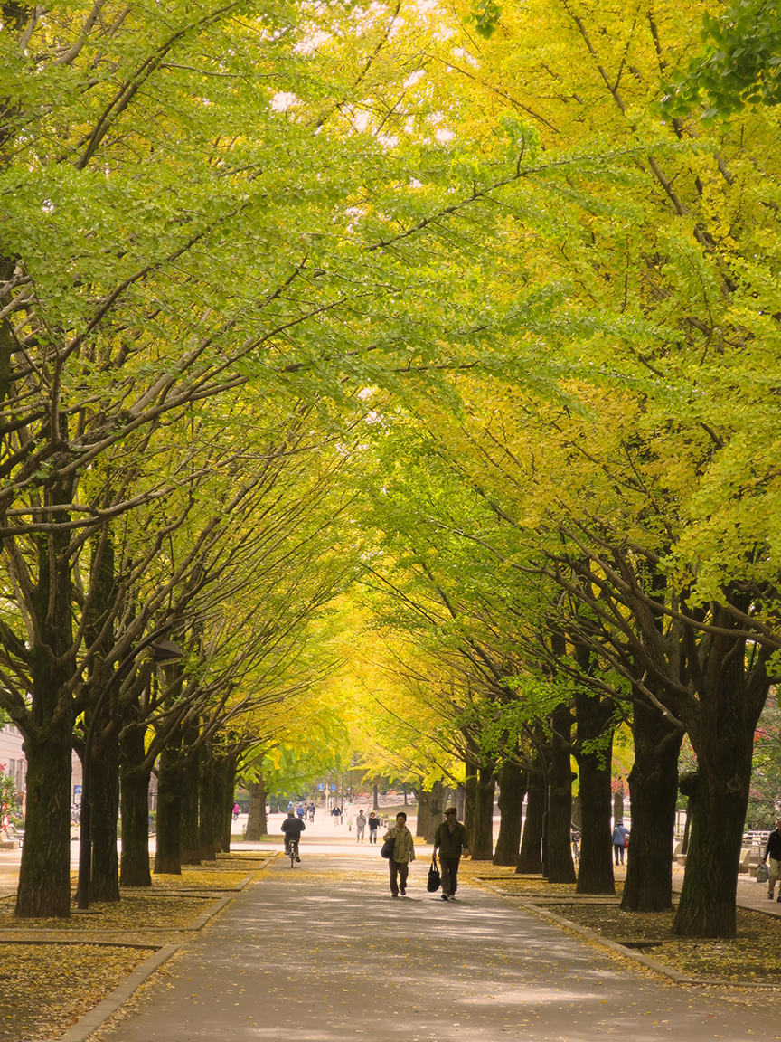 This gorgeous promenade of ginkgo trees hits its peak after the Japanese maples, around mid-November.