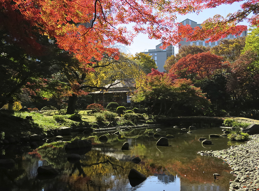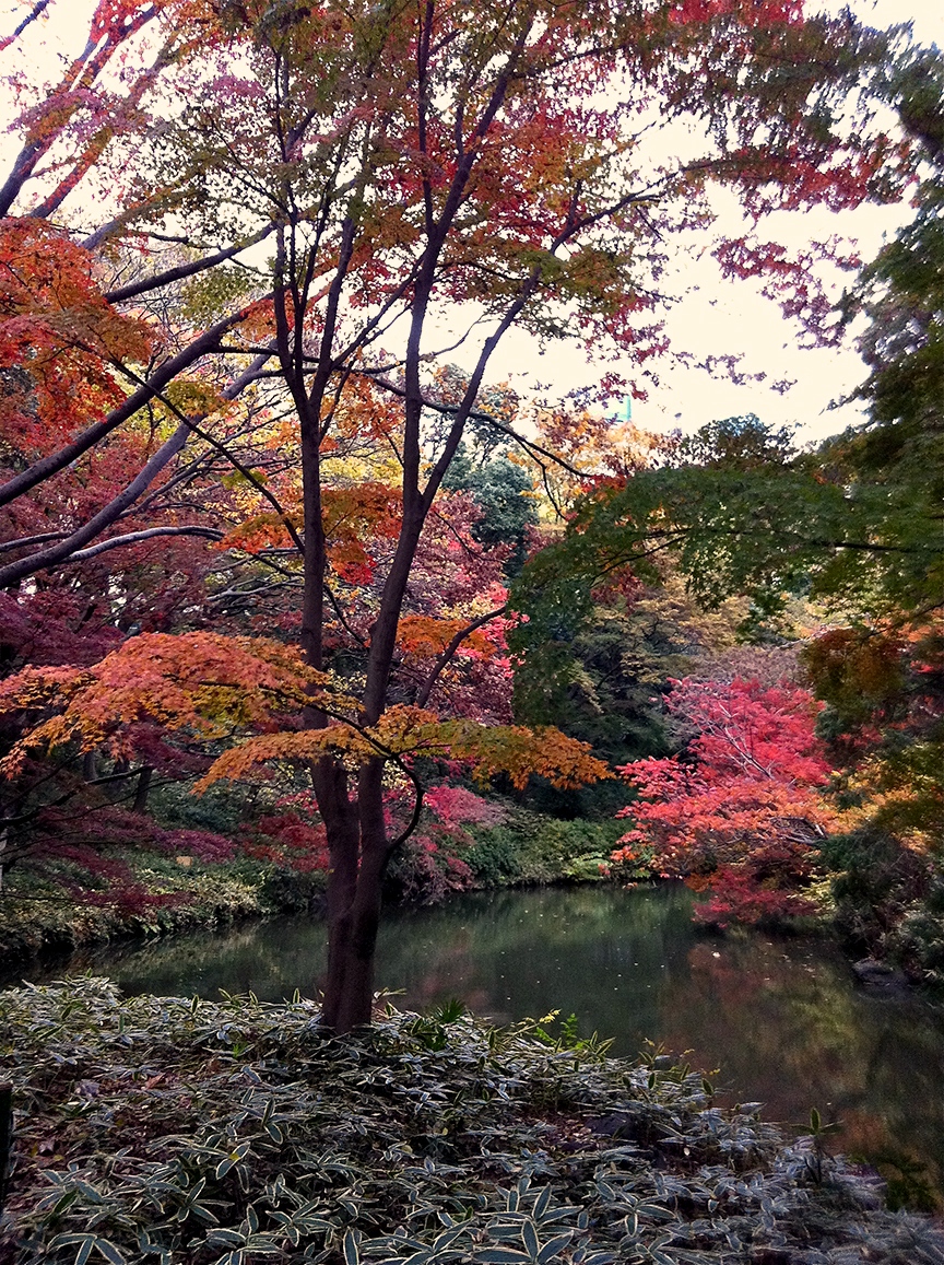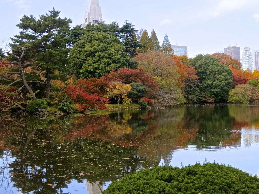 Shinjuku Gyō-en is most beautiful in early morning, when the pond reflects the changing Japanese maples and cherry trees.