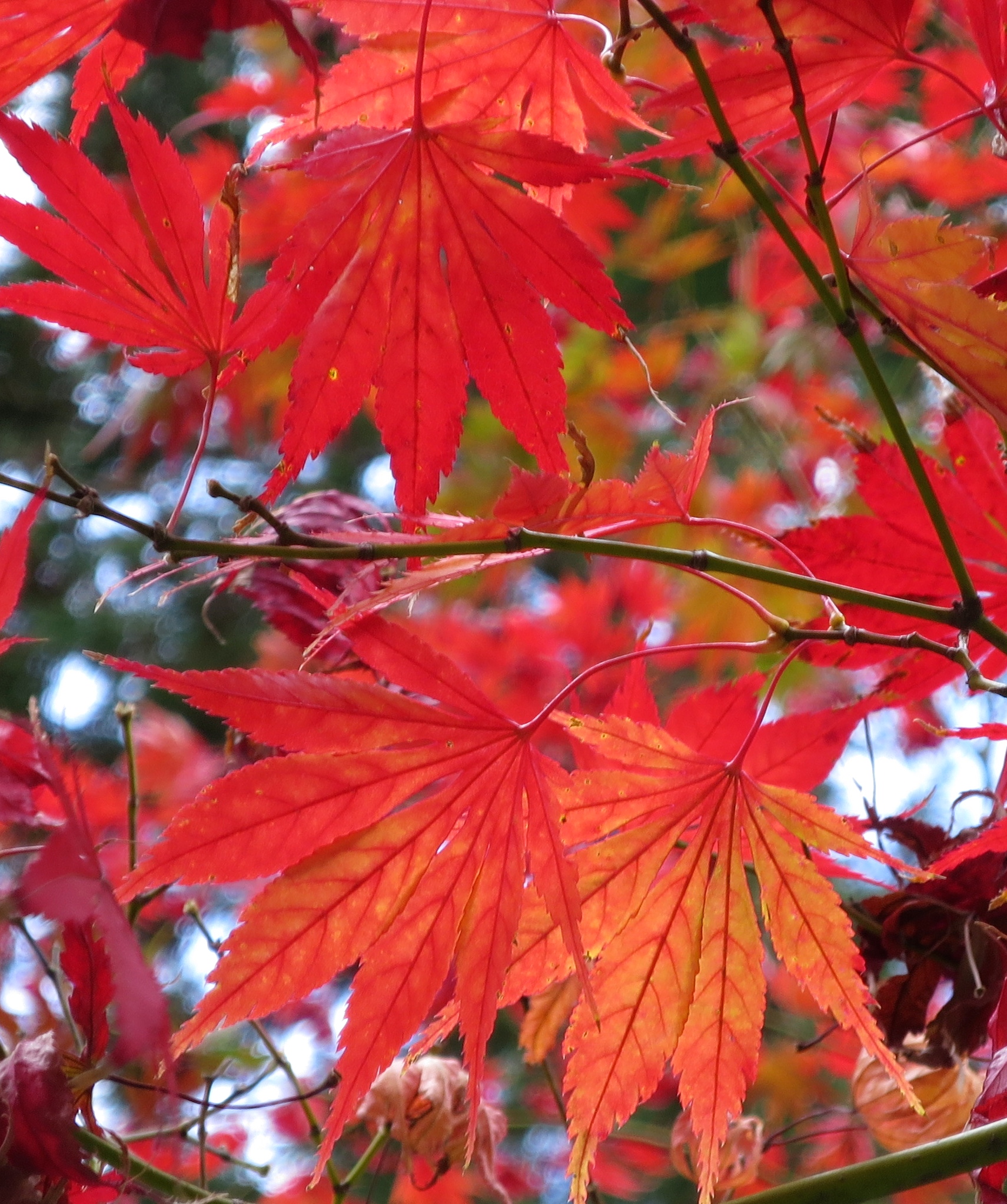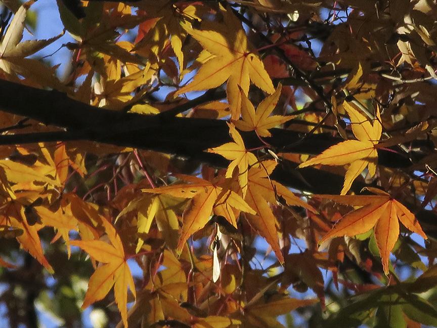 There are many different kinds of momiji in the Japanese garden at Showa Kinen Park, showing off different shades of yellow, orange and red at the same time.