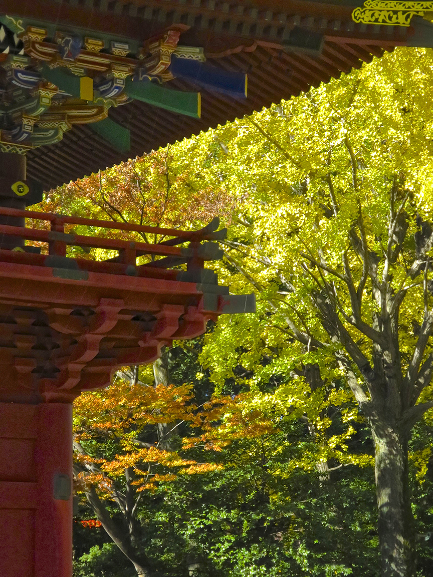 Usually the main gate is the most colorful thing around, but the ginkgos and maples make its red lacquer and gold leaf seem pale in comparison. They’re at their best in late November.