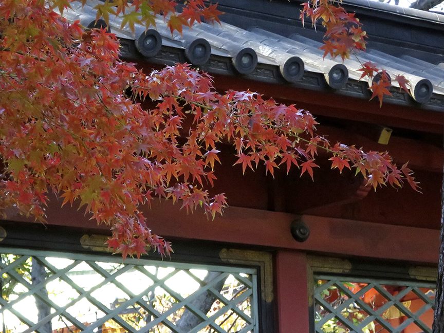 Gotokuji’s wooden pagoda is the perfect backdrop for splendid red and gold maple leaves in mid-November. You’ll find them here earlier than in central Tokyo.