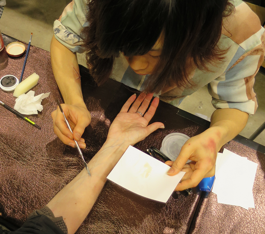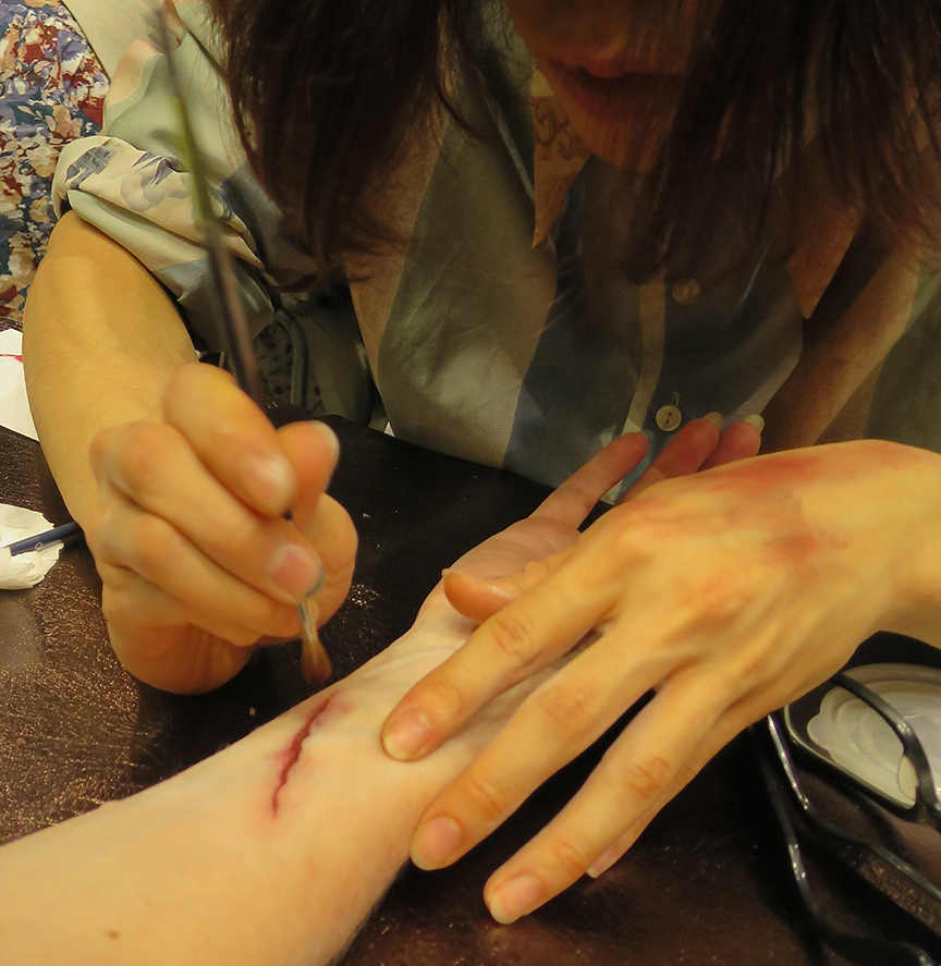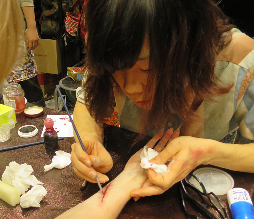 Looks totally real, doesn’t it? In fact, it’s the artistry of one of the students at the Amazing School JUR’s special effects table at Design Festa! I opted for the ¥500 standard slasher attack, but you could also sign up for the ¥1000 “X-marks-the-psycho” gashes or a gaping wound that looked like the velociraptors got loose in your room last night.