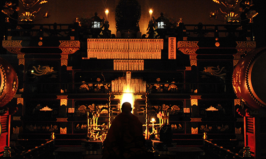 But the totally interesting stuff didn’t end there – after seeing the impressive pyrotechnics, we went inside the giant modern cube of an annex, entirely covered by the Fudo sutra written out in giant black and gold Sanskrit characters.