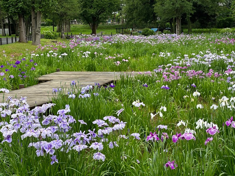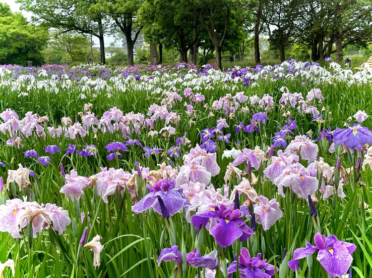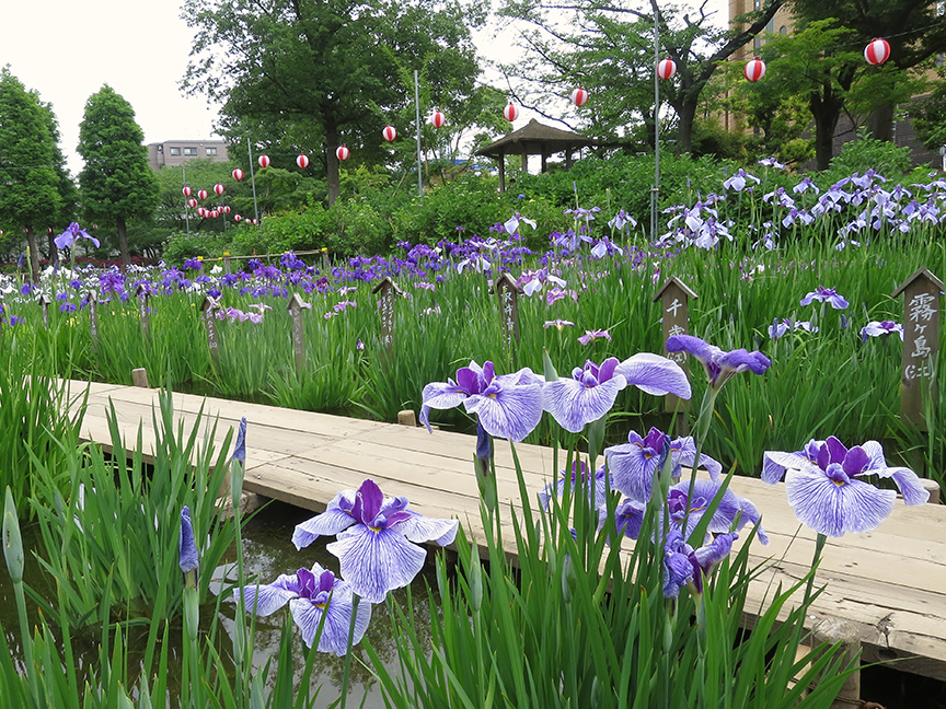 This is one of the two must-see iris gardens right in central Tokyo. The setting of this iris pond is especially beautiful, and no matter which angle you view it from, the background is gorgeous.