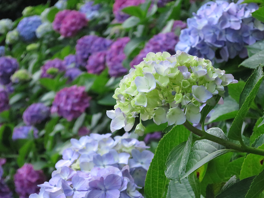 Every kind of hydrangea you can imagine greets the waiting crowds at the foot of Hasedera temple’s ajisai mountain
