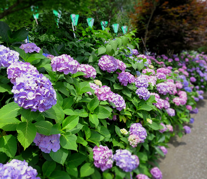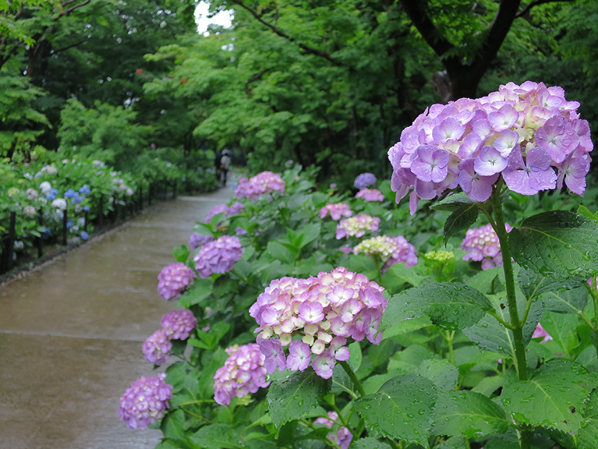 The famous banks of hydrangeas are not actually in the park – they border the train tracks between the park and Oji Station. Stairways lead down to the path from the park, though, and you can easily get there from any direction.