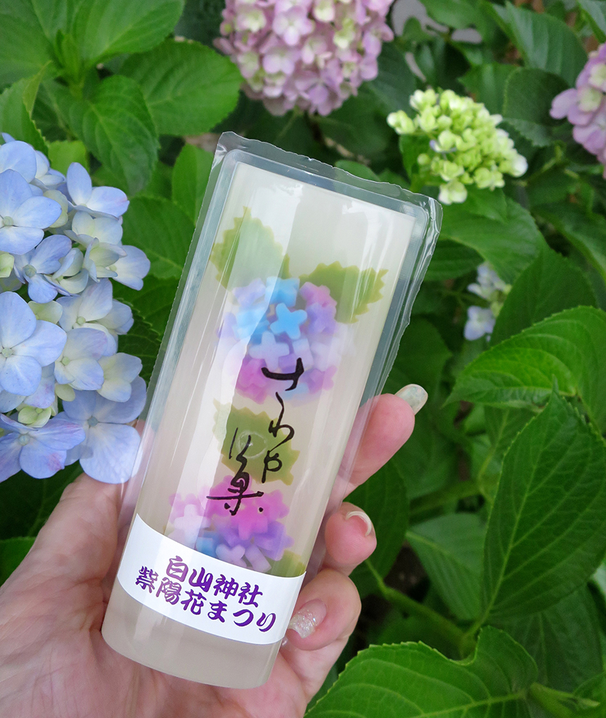 And of course they sell hydrangea-themed sweets! This is mizu-yokan, a sort of jellied bean paste that is popular in summertime.