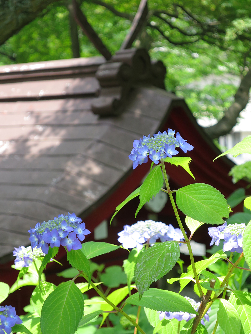 During the Ajisai Festival (the second week in June very year) the fu-dogs greet visitors with a crazy bouquet of living hydrangeas.