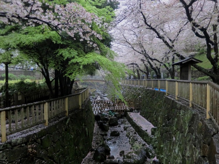 Right across the street is one of my favorite hidden parks of Tokyo: the Otonashi Water Park. The blooming cherry trees overhanging this artfully-landscaped sunken garden