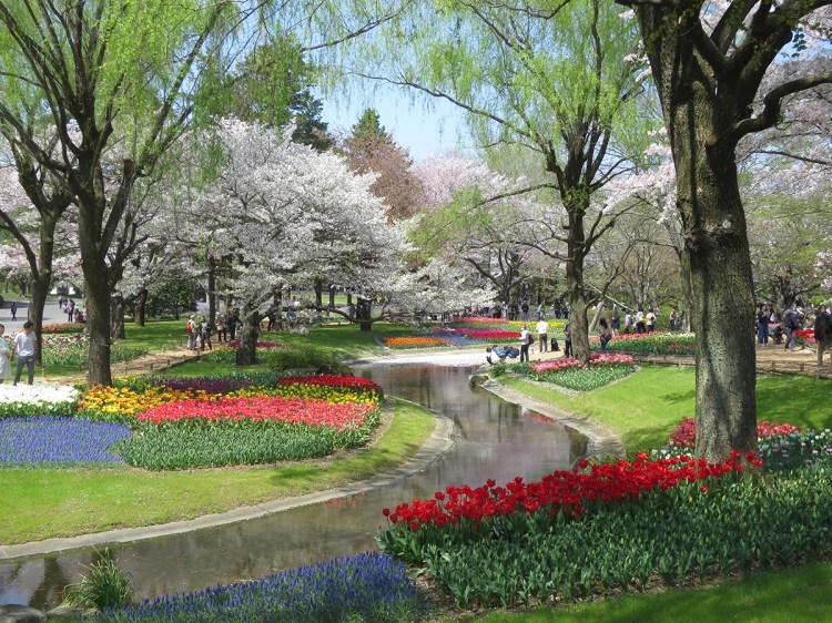 This park isn’t in central Tokyo, but it’s worth the trip out to Tachikawa Station because there are so many fantastic (and enormous!) trees, blooming throughout the season. Also, the trees here bloom about a week later because it’s away from the central Tokyo heat island, so if you think you missed the cherry blossoms, you might still catch some here!