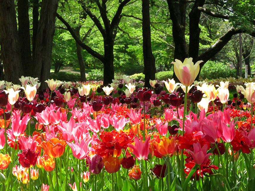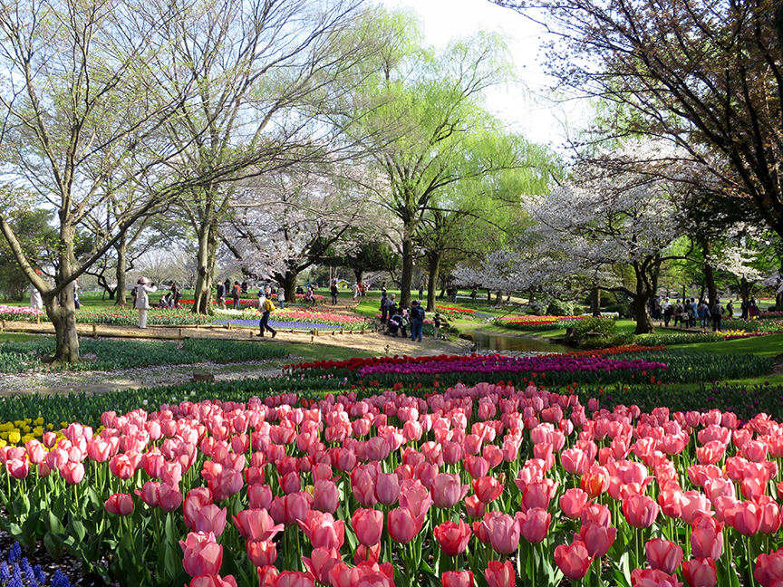 The tulip garden at Showa Kinen Park blooms from the beginning of April until early May.