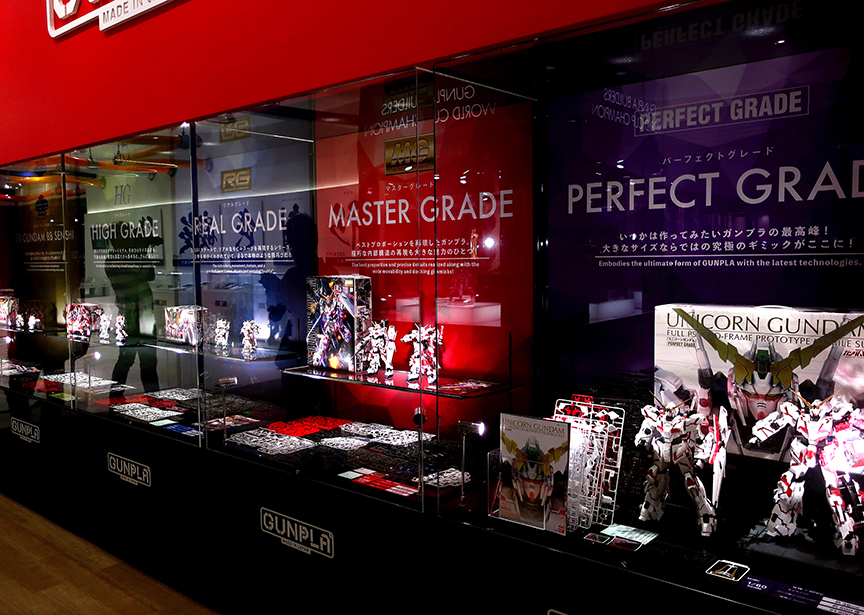Perfectly constructed Gundams in every series are displayed like the crown jewels…