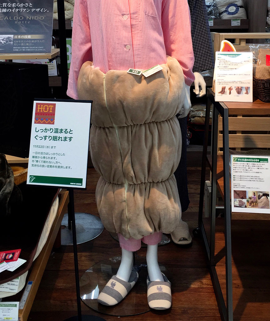 Okay, I’ll admit, if I lived in a typical Japanese house that’s mysteriously colder inside than outside in the winter and really really REALLY didn’t want to give up my blanket when I left the couch to refill the popcorn bowl, this would be top of my list. (Tokyu Hands, Shinjuku)
