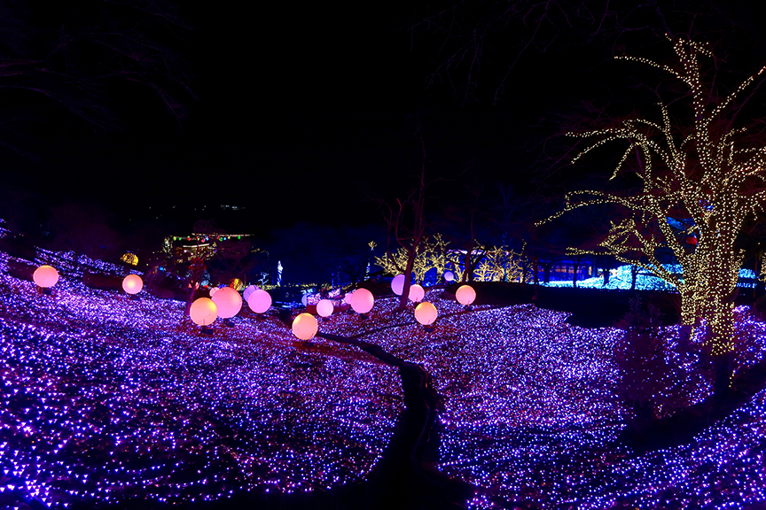 This place is a bit of a trek from Tokyo (it takes about an hour by train from Shinjuku Station, then a short bus ride), but if you love whole hillsides carpeted with lights, Sagamiko is fun to see once. Tips & tricks for getting there are here.