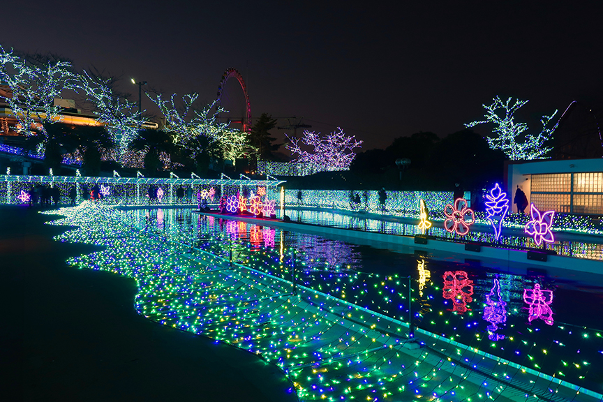 Admission: You can go see the illuminations with a special Night Entrance Fee that starts at 16:00 and includes a free pass for all the attractions: Adults(18-64) ¥1400; Middle and high school students ¥600; Children ¥300 (under 3 are free); Senior(65+) ¥600