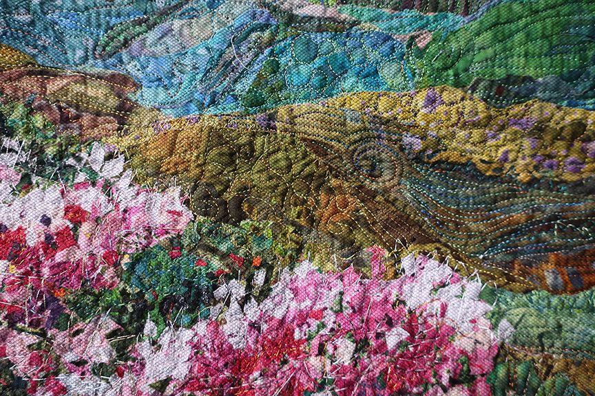 Detail, showing the use of thread color and pattern to enhance the texture of various elements