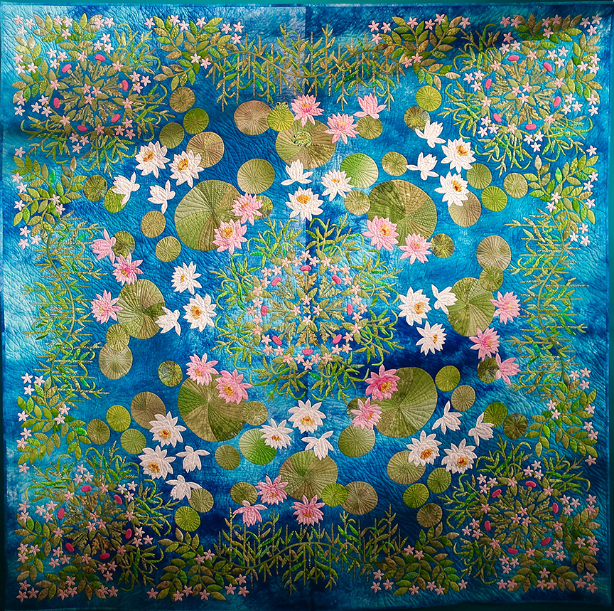 And this waterlily quilt just killed me, with its deep watery blue ground: