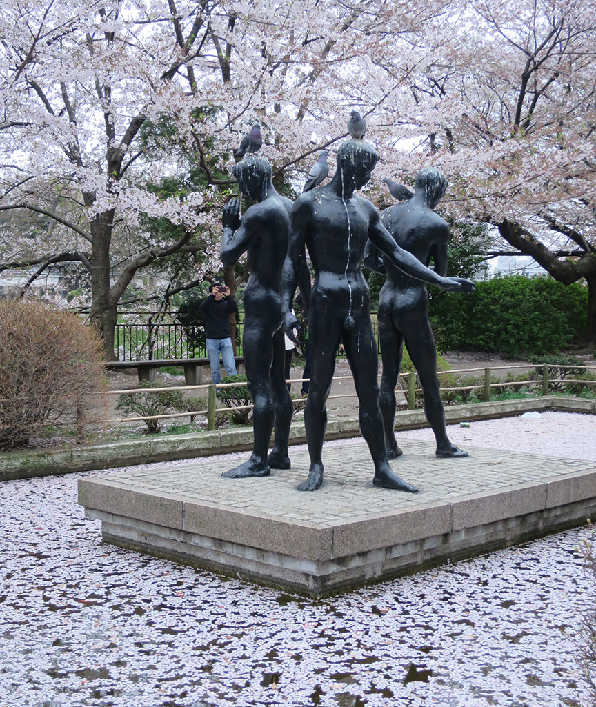Near the Hanzōmon end of the moat, this fountain becomes a little oasis of pink too (also, an illustration of the evergreen maxim that “Some days you are the pigeon, and some days you are the statue.”)