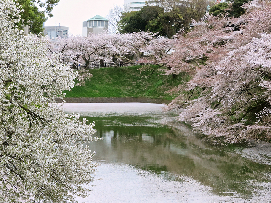 And speaking of “pink snow,” even if you don’t get to see a river covered in petals, sitting among the falling blossoms on a warm spring day is pretty heavenly. My favorite place is this one, next to the moat encircling the Imperial Palace, near Takebashi Station